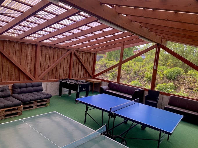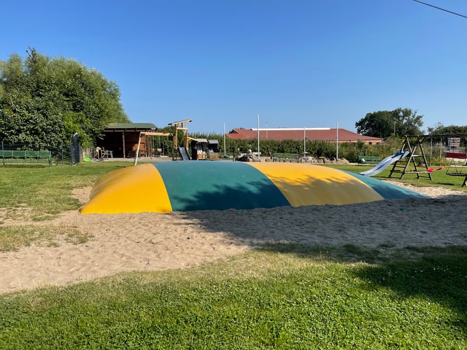 Bei Regen bietet unser Spieleboden mit Rutsche, Bällebad, Tischkicker und Spielsachen endlosen Spaß. Für die Älteren gibt es Tischtennis-, Fußball- und Basketballplätze. Die Heuscheune sorgt für echtes Bauernhofvergnügen für alle Altersklassen – ein Ort voller Entdeckungen und Freude!